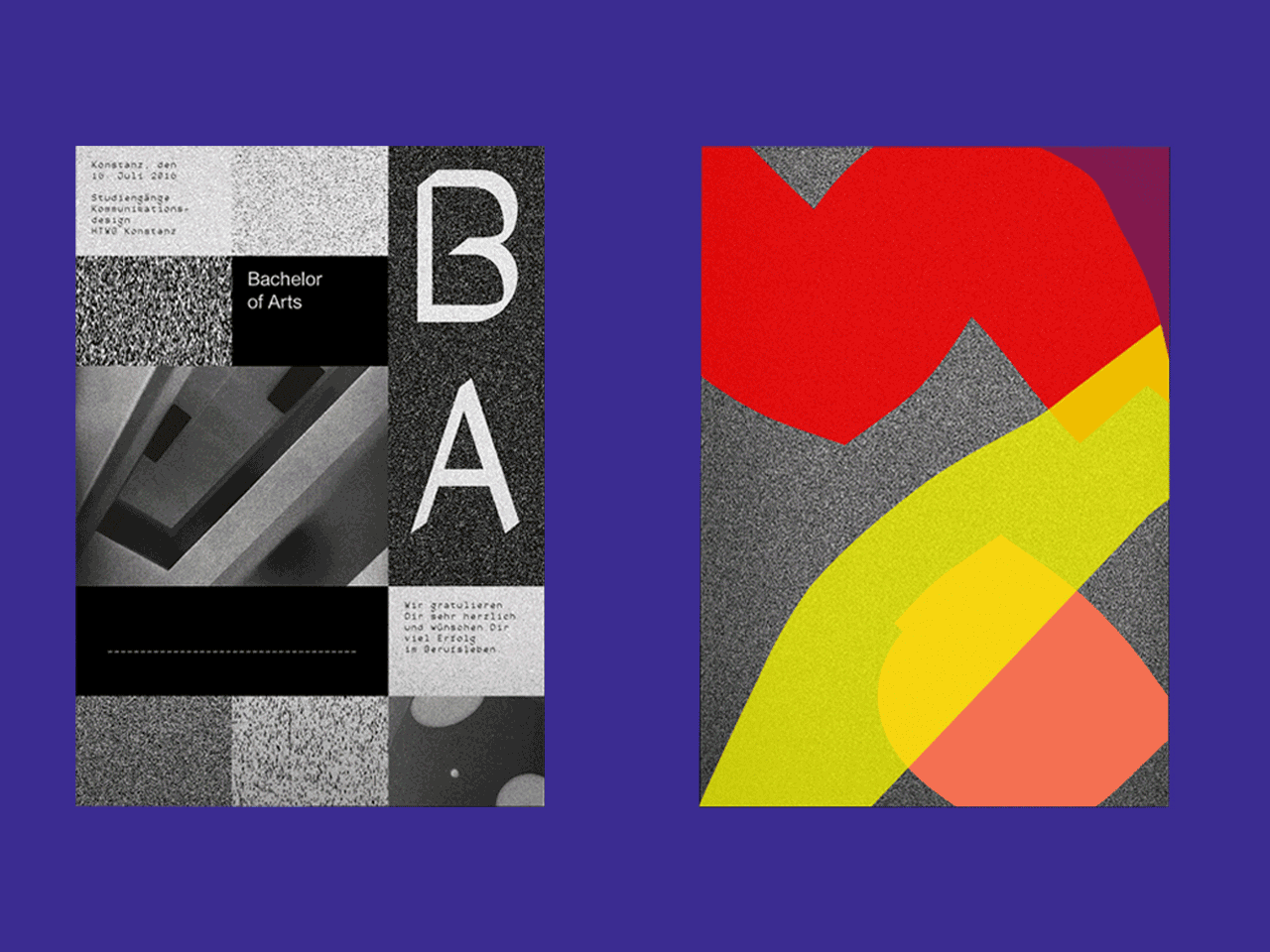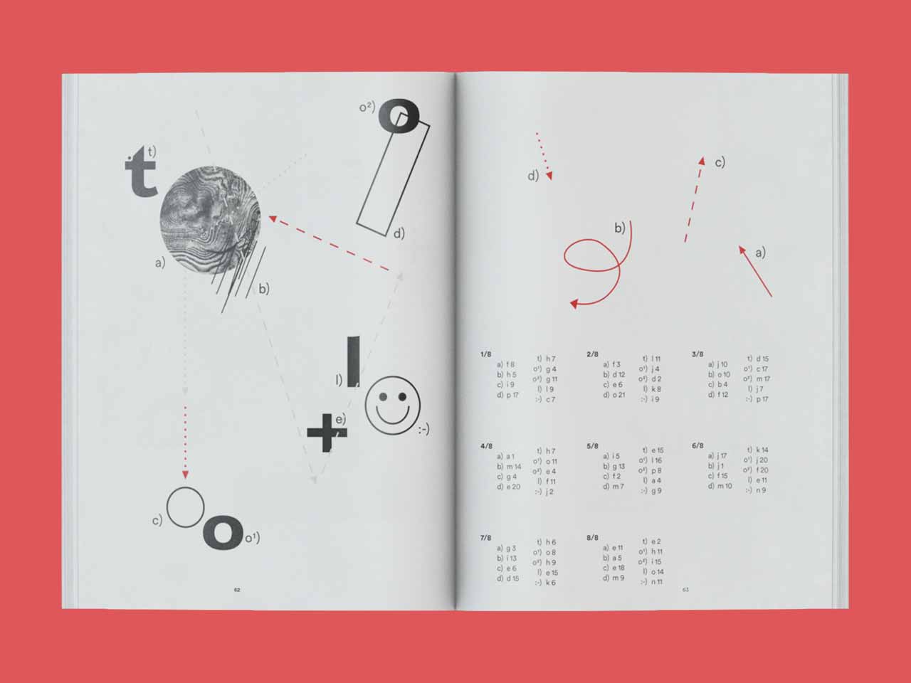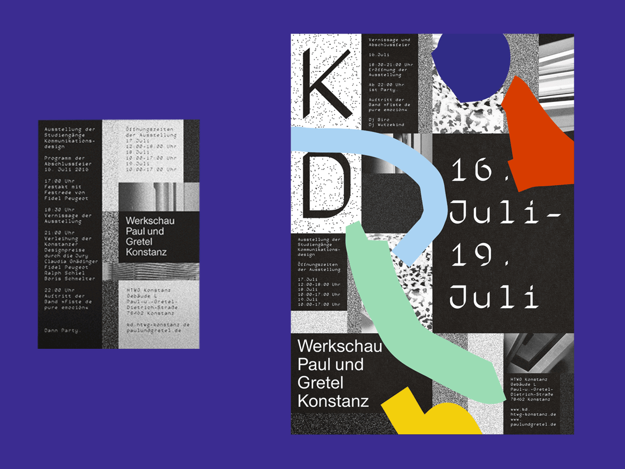 Visual identity for the graduation ceremony and exhibition of the course “communication design” at HTWG Konstanz. The composition is based on the circulation of each term. The characeristic of the ring binder permits every chapter to be on the cover of the catalouge, which differs from example to example.