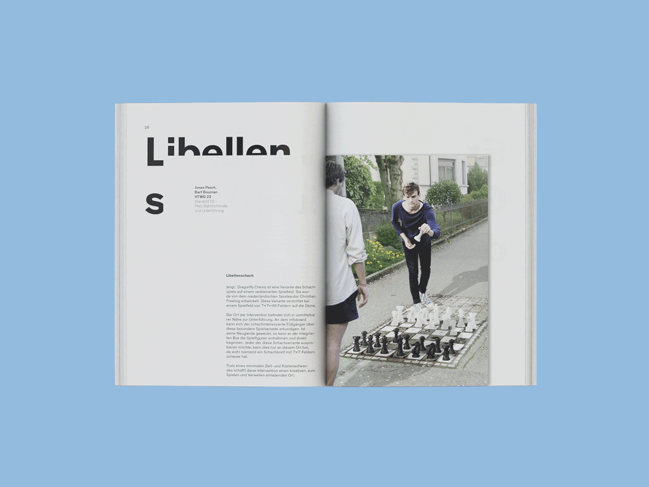 Documentation of the project “Public intervention” of the architecture course at HTWG Konstanz. The single page and the typography are looked at as a space, which is intervened by the reduction of the pages.